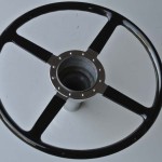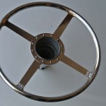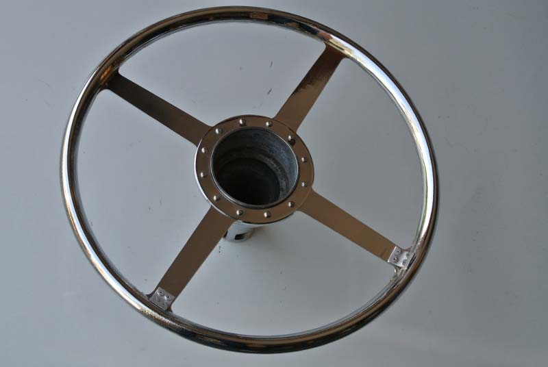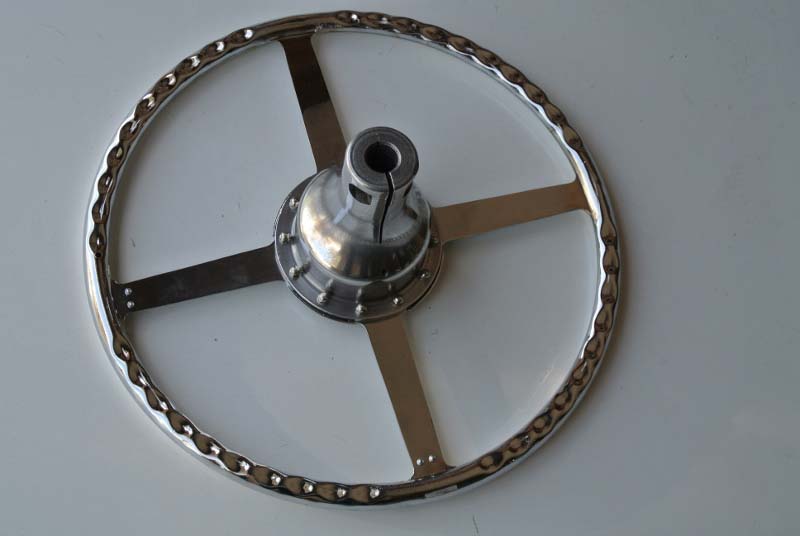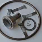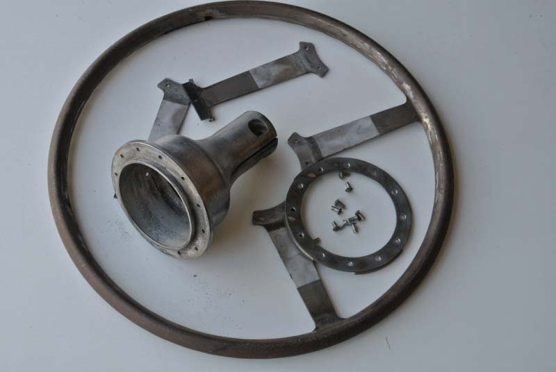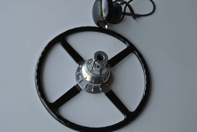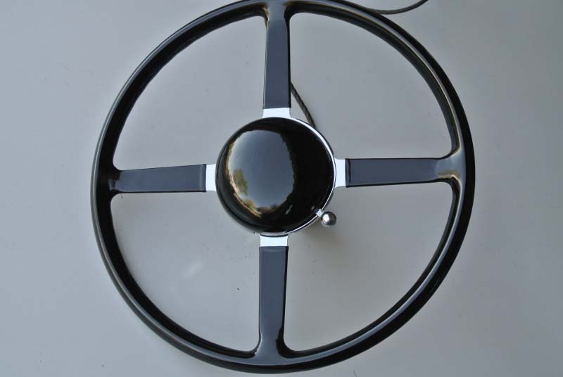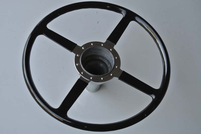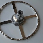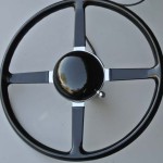 Wolseley 1937Vintage steering wheel was rebuilt with a new rim and superior re-attachment blocks. We also installed hand-made rivets and finished with an original type black plastic to complete the restoration.