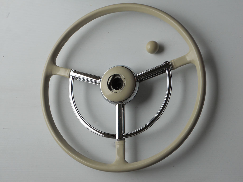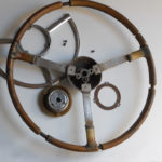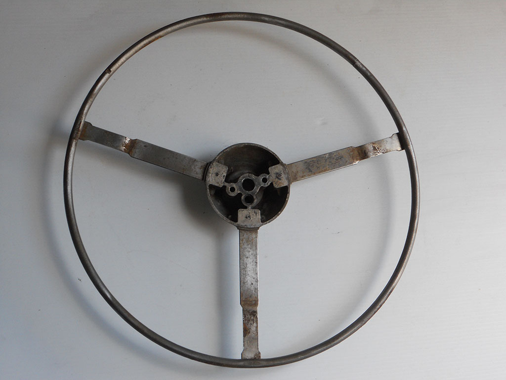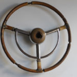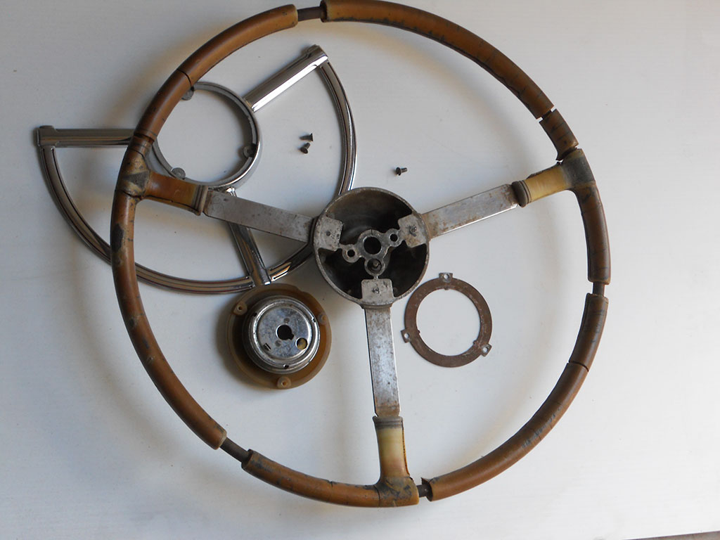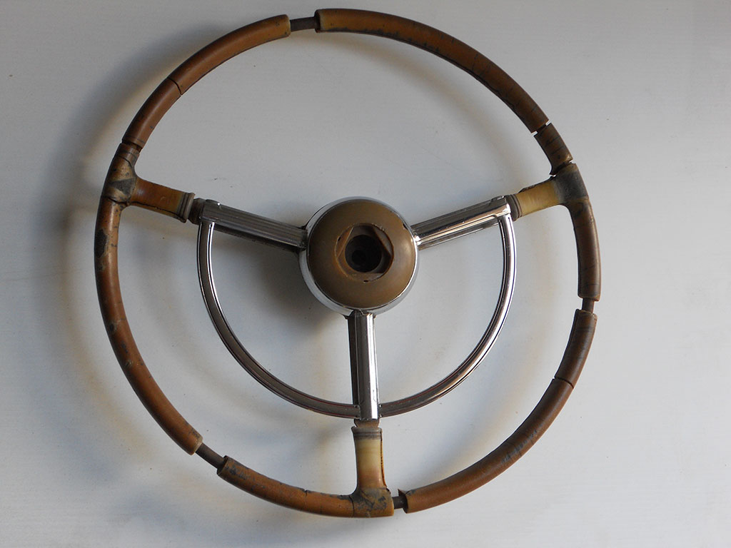 This Vintage steering wheel a 1939 Oldsmobile was rebuilt from the skeleton frame. All original contours and finger grips maintained.