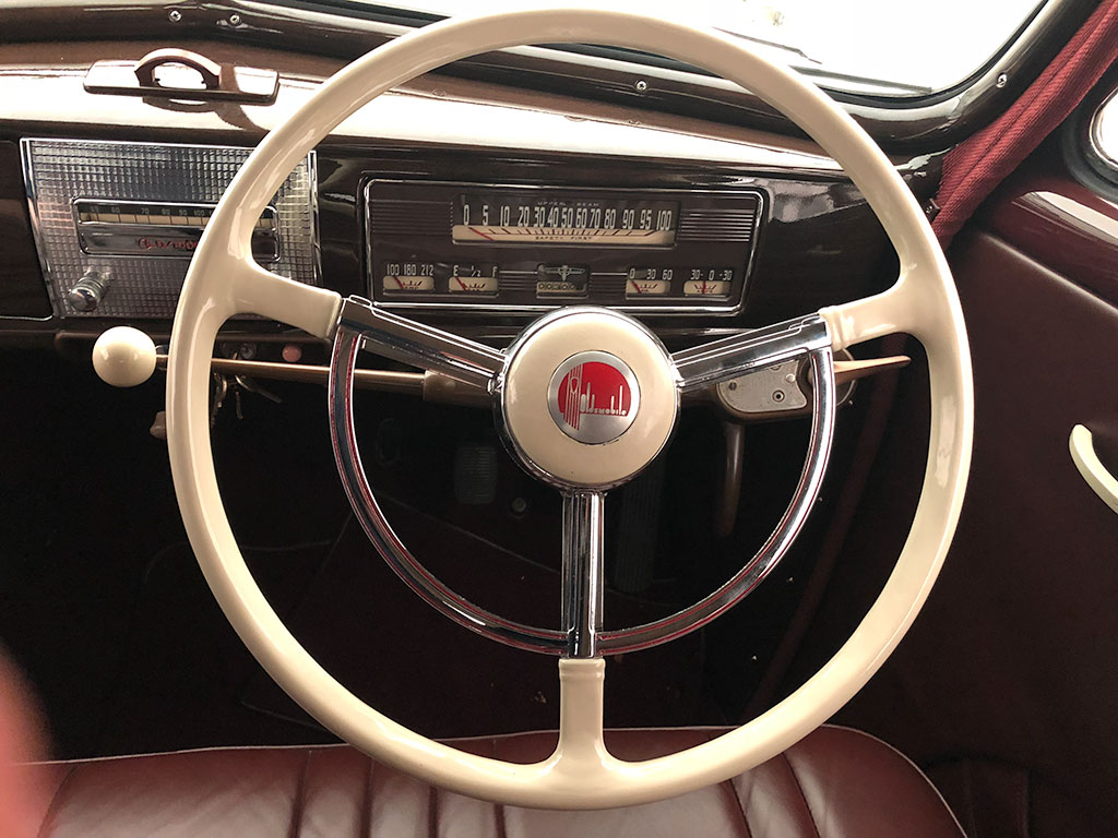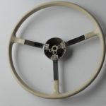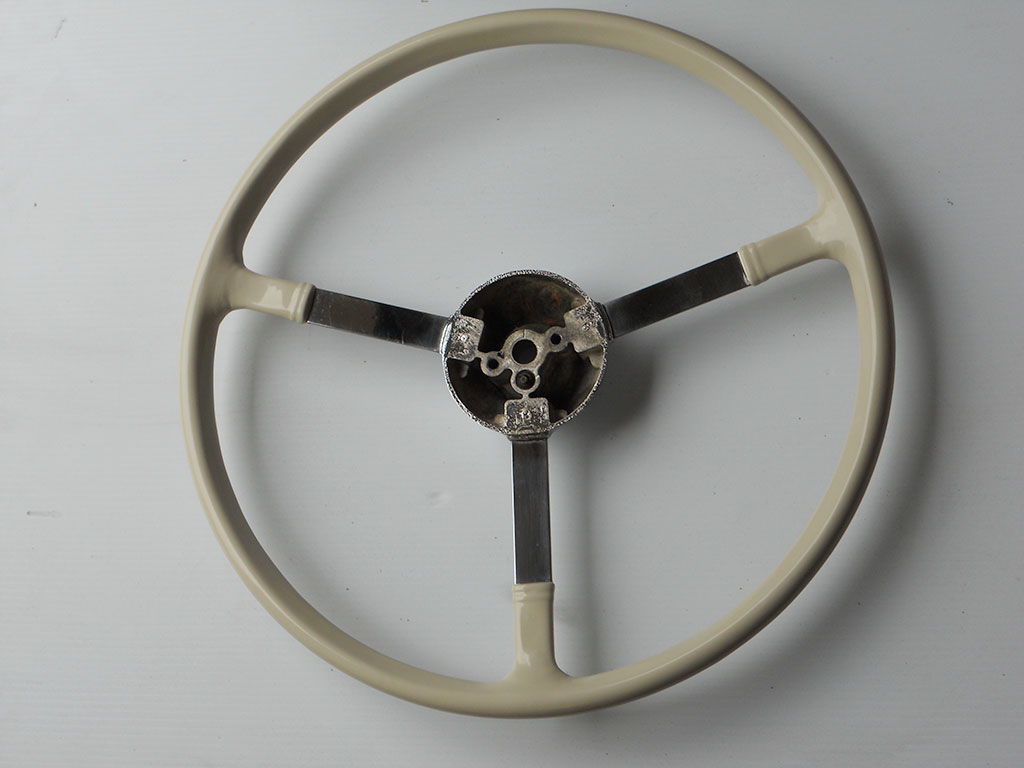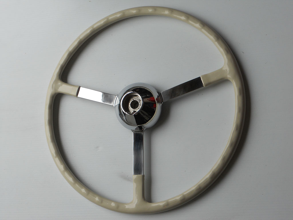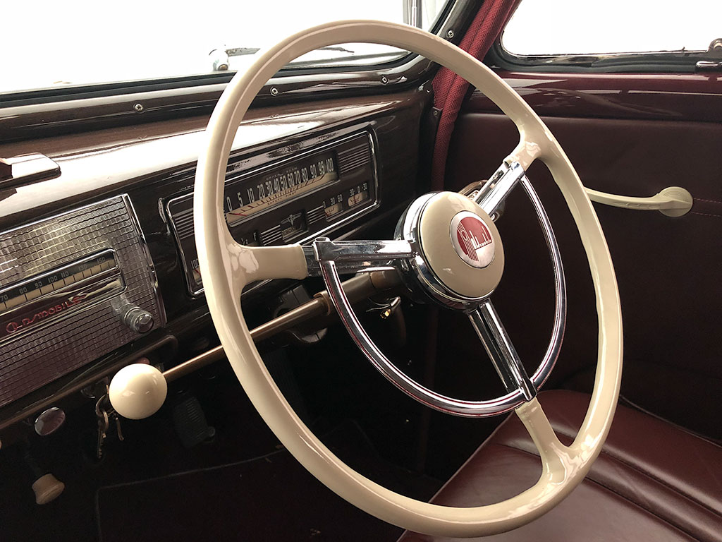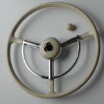 This Vintage steering wheel a 1939 Oldsmobile was rebuilt from the skeleton frame. All original contours and finger grips maintained.