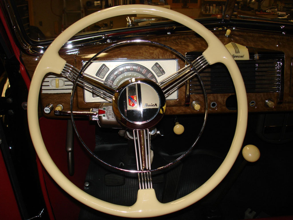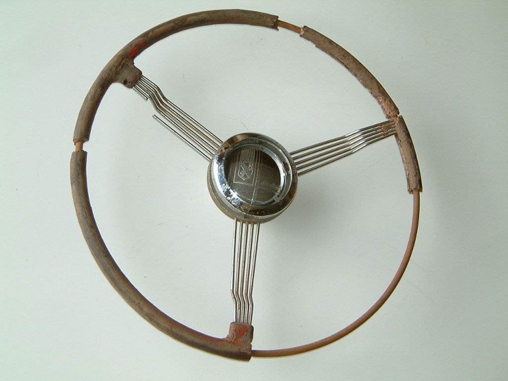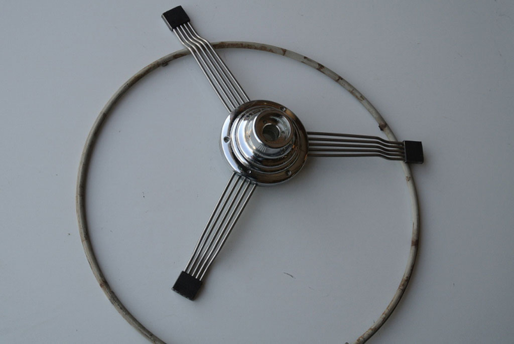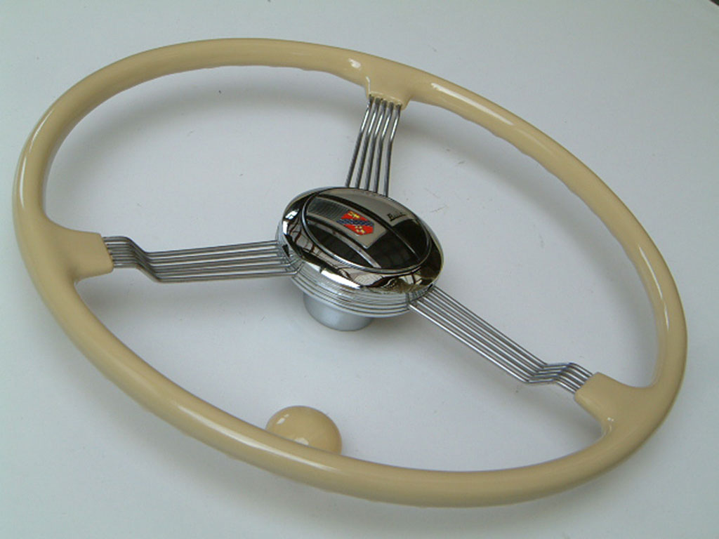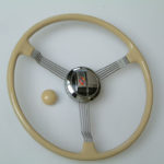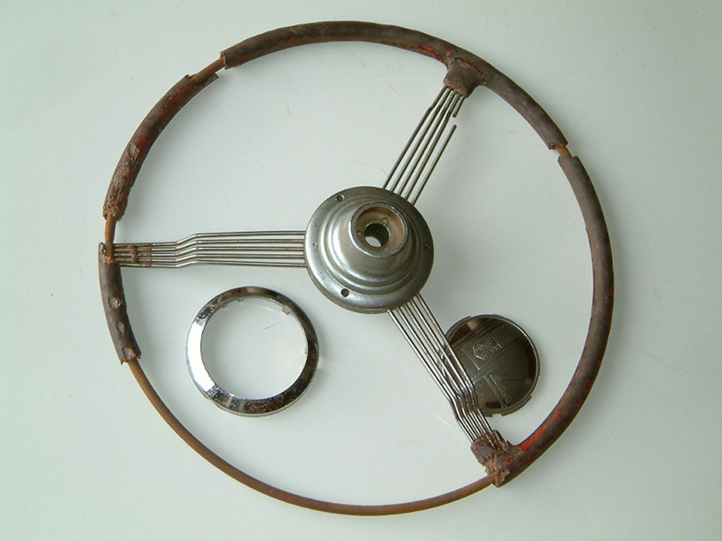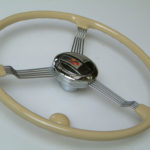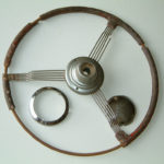 Vintage steering wheel sent “down Under” from the USA. Steering wheel required a total rebuild restoration, including new spokes and hand enameling of the centre horn button.