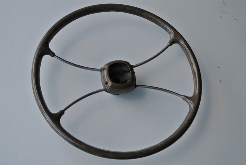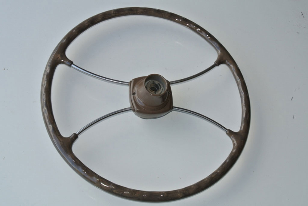 Chevrolet 1939Skeleton steering wheel. Rebuilt from frame. All original contours and finger grips maintained. Hand plasticised in a chocolate brown as per sample colour.