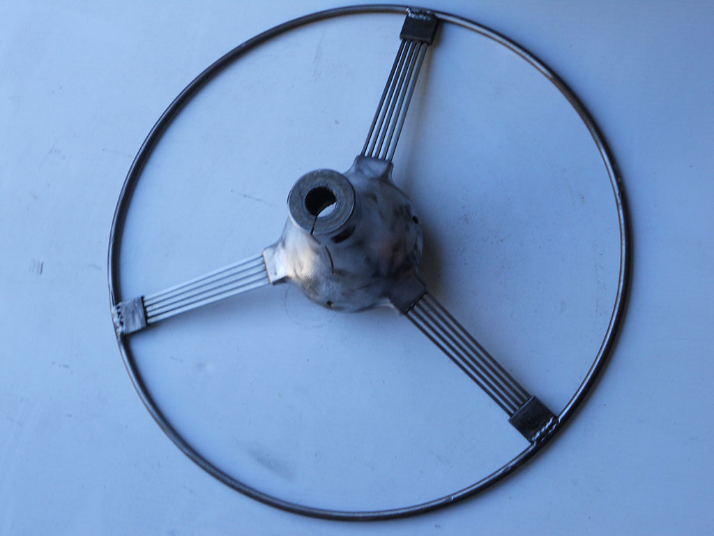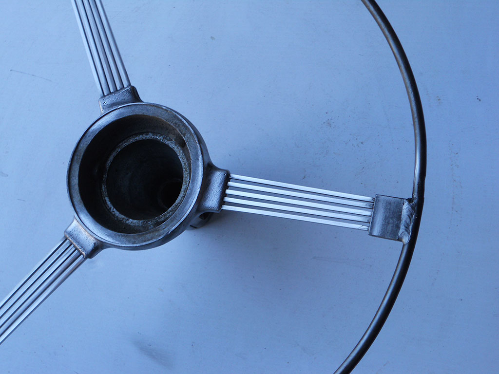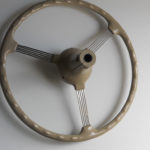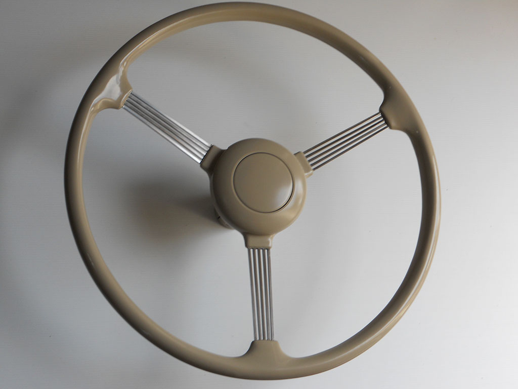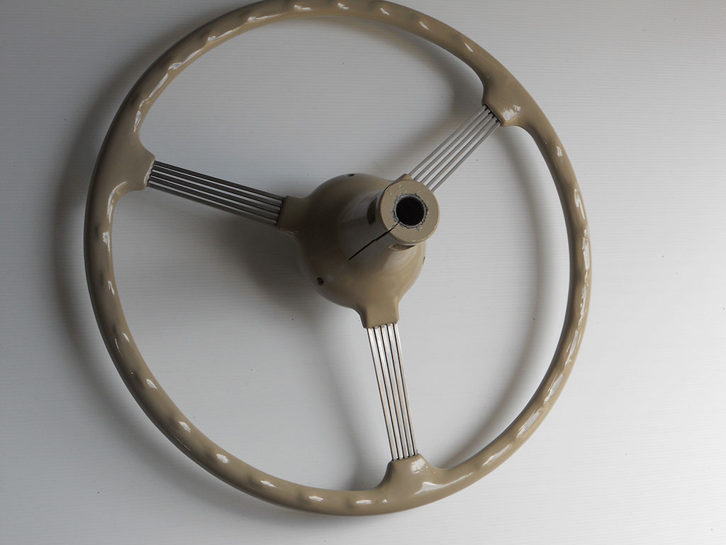 Steering wheel was rebuilt from the bare frame using superior re-attachment blocks compared to the original and plasticised in a custom colour.