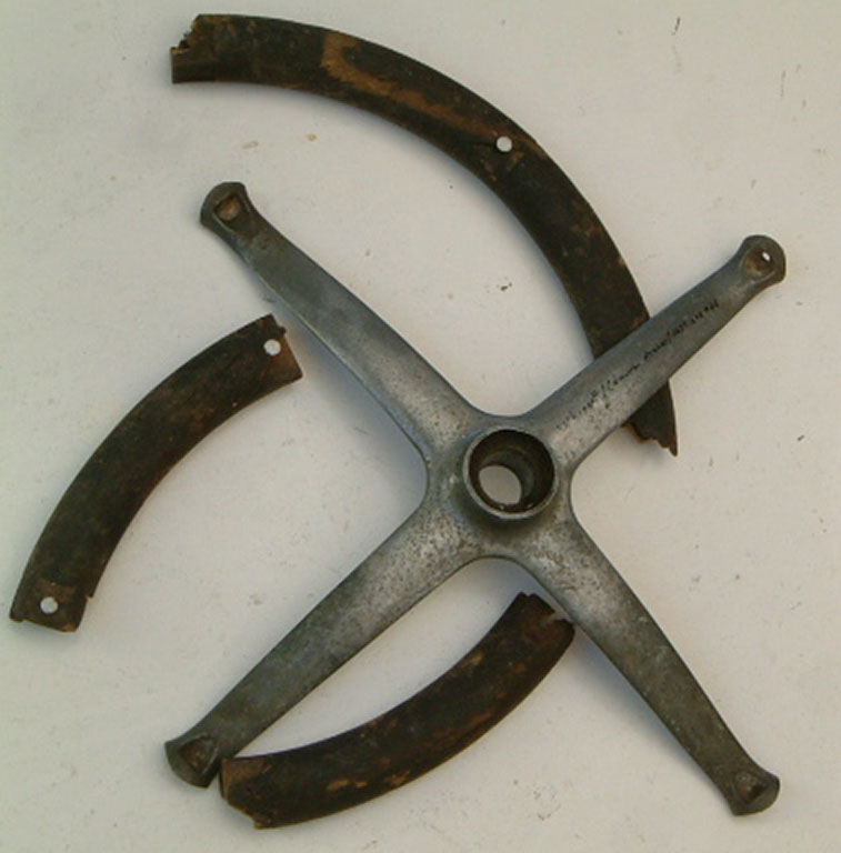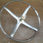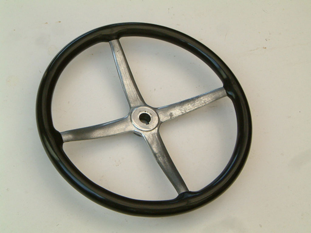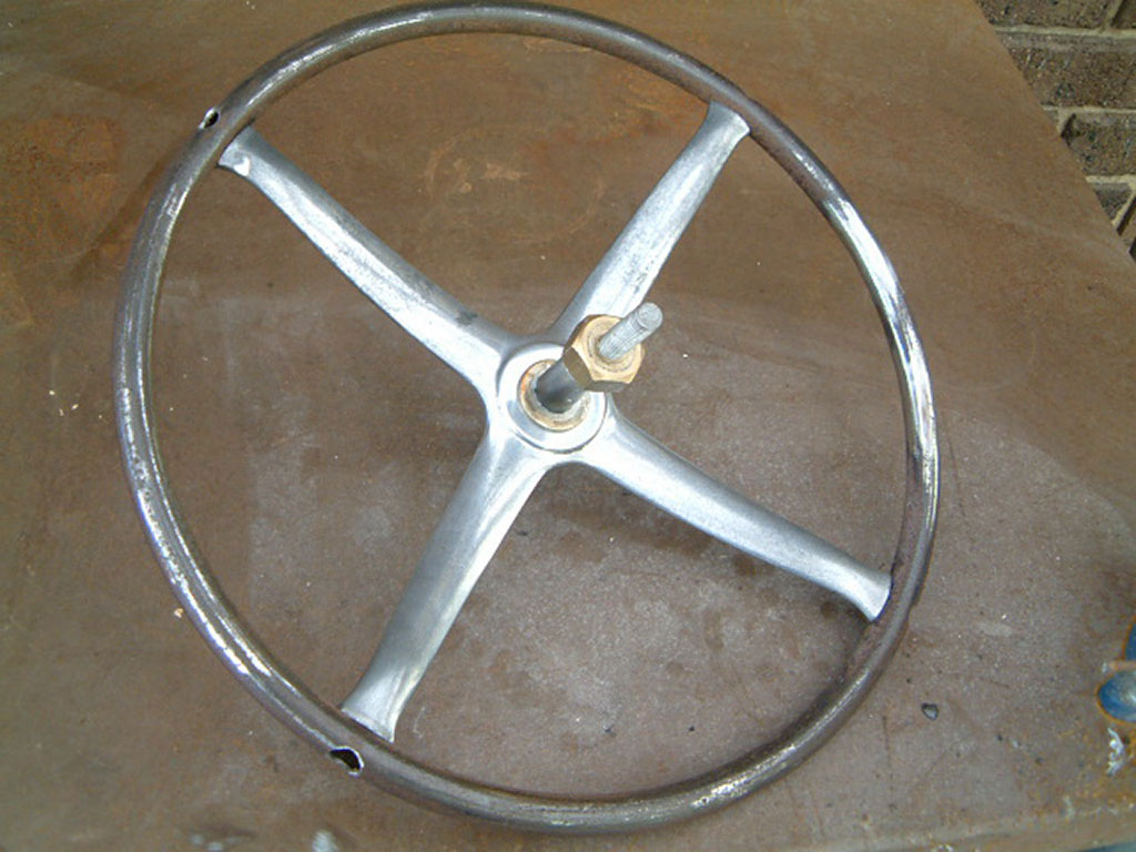 Whippet Overland 1928Vintage steering wheel rebuilt from Spider and plasticised in black. Spokes very heavily pitted but polished to a reasonable standard considering damage..