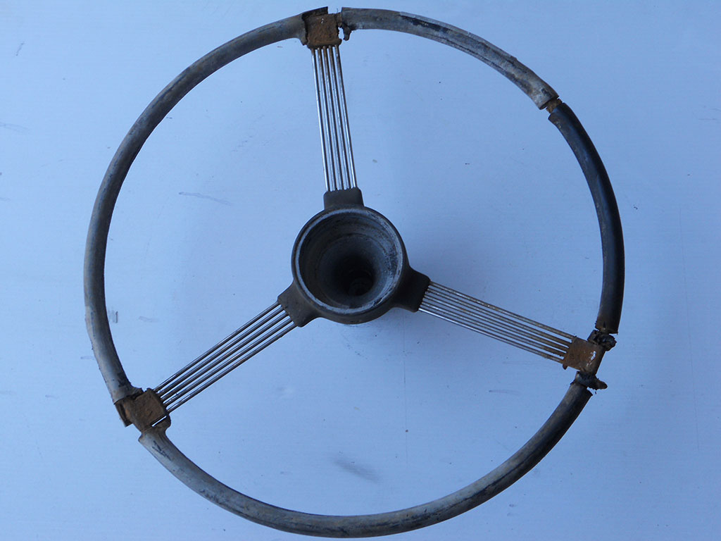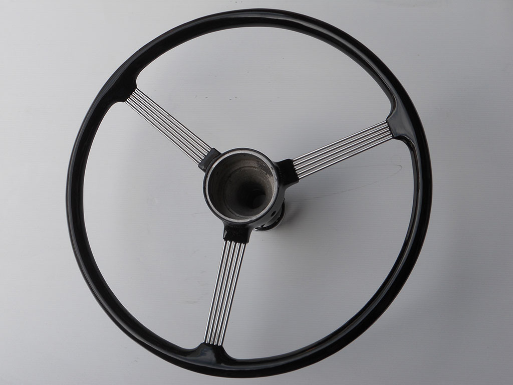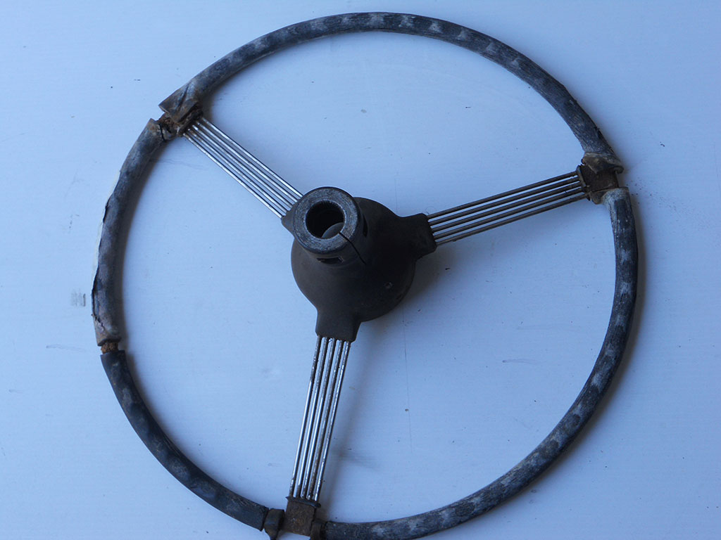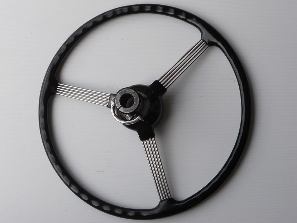 Classic 1950’s steering wheel.Restored as original, plasticised in gloss black.