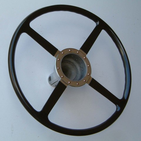 This vintage steering wheel was totally rebuilt including new hand-made rivets, and finished with a plasticised coating using original type material.See more