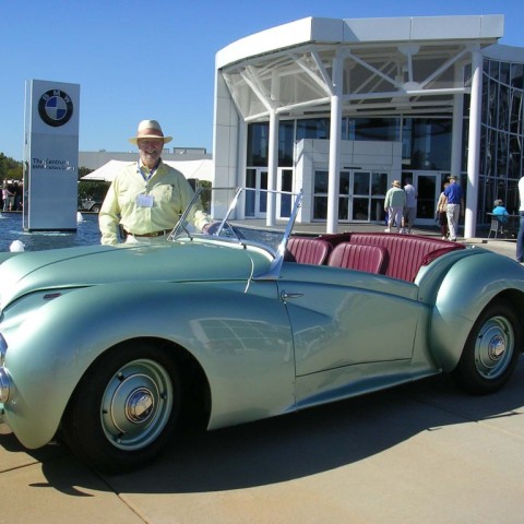 This 1948 Healey Westland is believed to be the original Donald Healey prototype car that he personally drove across America. After being discovered, the car was shipped out to Melbourne Australia, in 2003 and was restored locally. Fortunately, a small amount of the original paint colour was found on the car which was sufficient to allow...See more